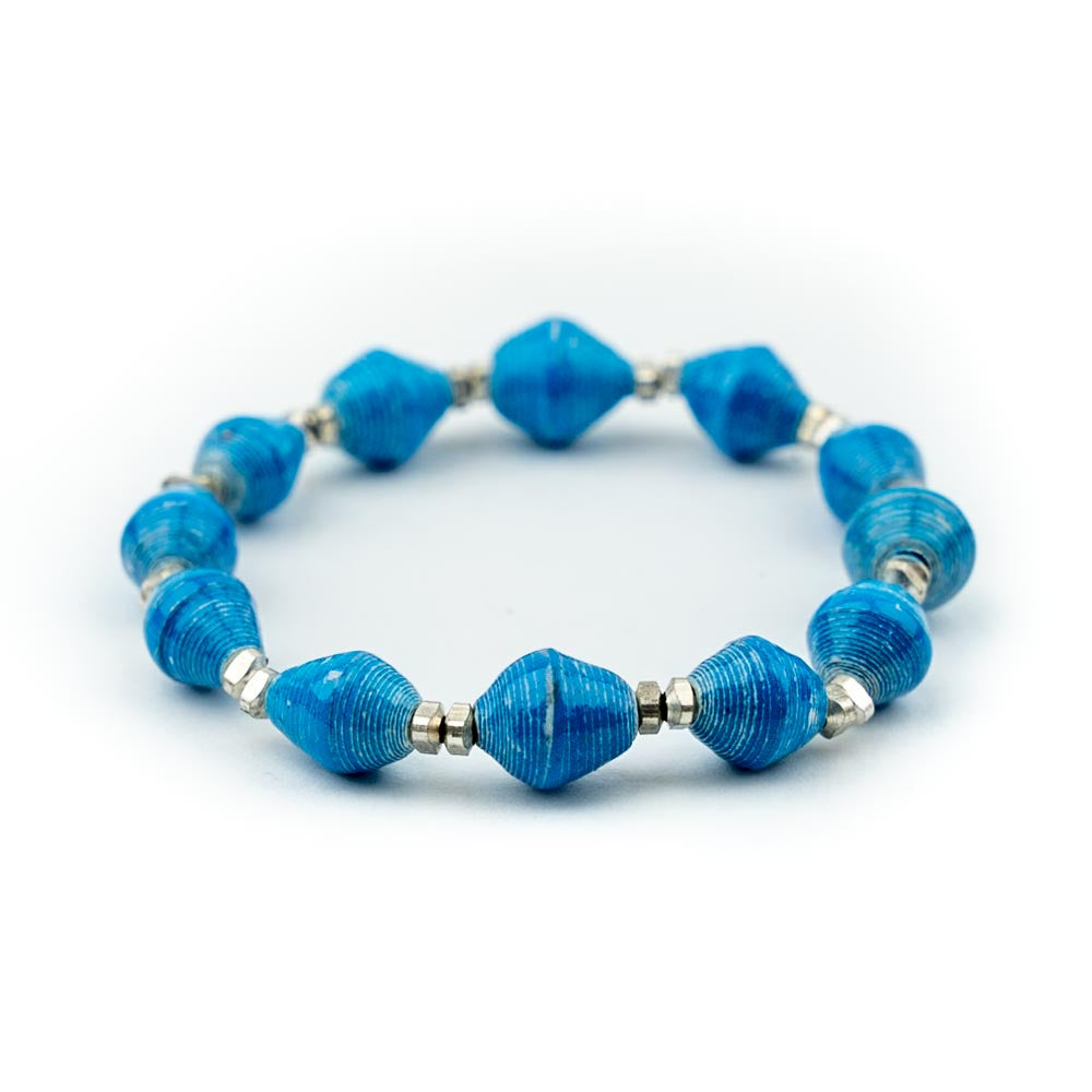 These fun bracelets come in a variety of colors and are made of 100% recycled paper beads handcrafted by Masai women. Gorgeous copper/silver/gold faceted spacers are hang-strung between each paper bead. They are perfect to stack with any of our other paper bead bracelets or mix it up with one of your own bracelets! How you can make a difference: Each bracelet provides 200,000 gallons of clean water. Just 5 bracelets = 1 water...
