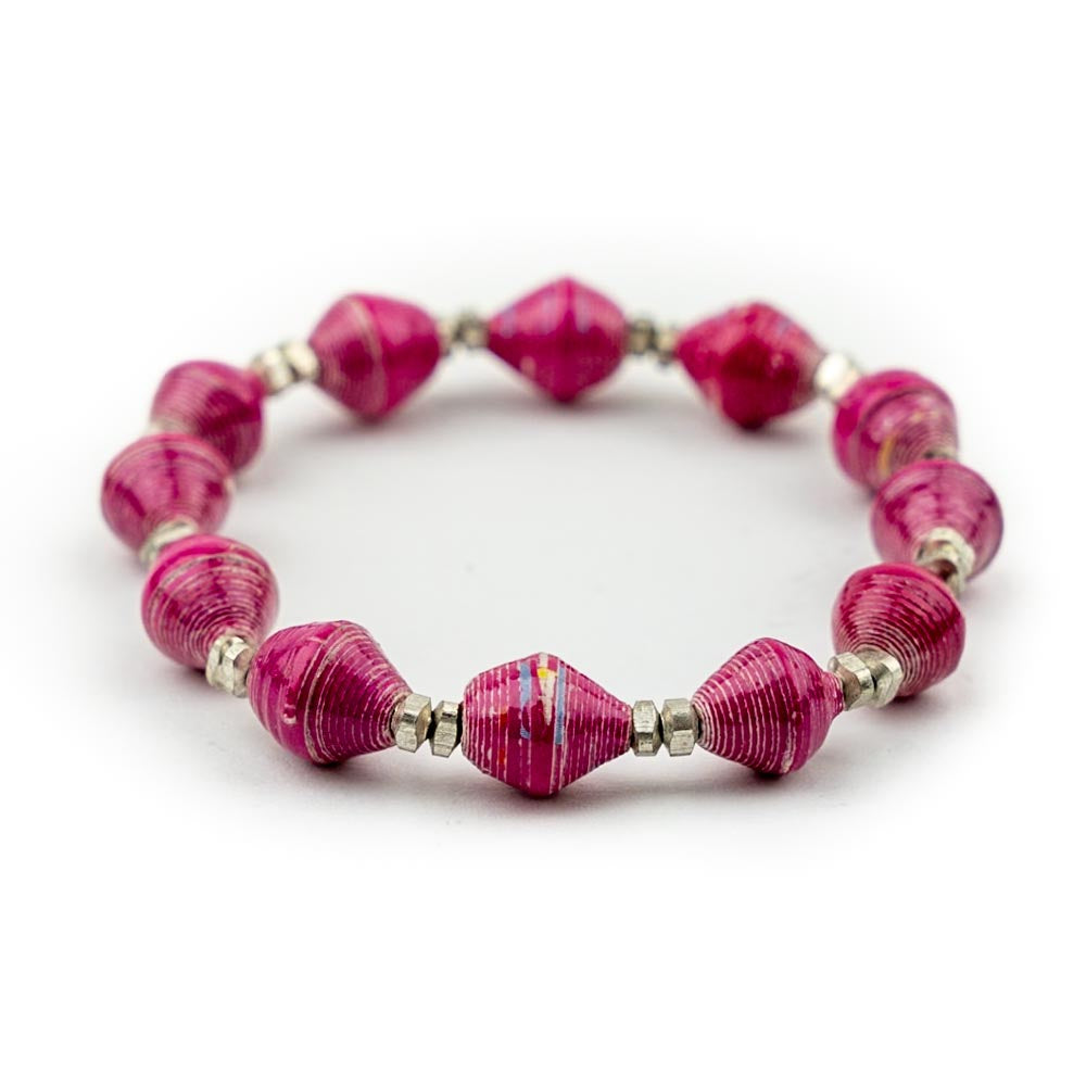 These fun bracelets come in a variety of colors and are made of 100% recycled paper beads handcrafted by Masai women. Gorgeous copper/silver/brass faceted spacers are hang-strung between each paper bead. They are perfect to stack with any of our other paper bead bracelets or mix it up with one of your own bracelets!