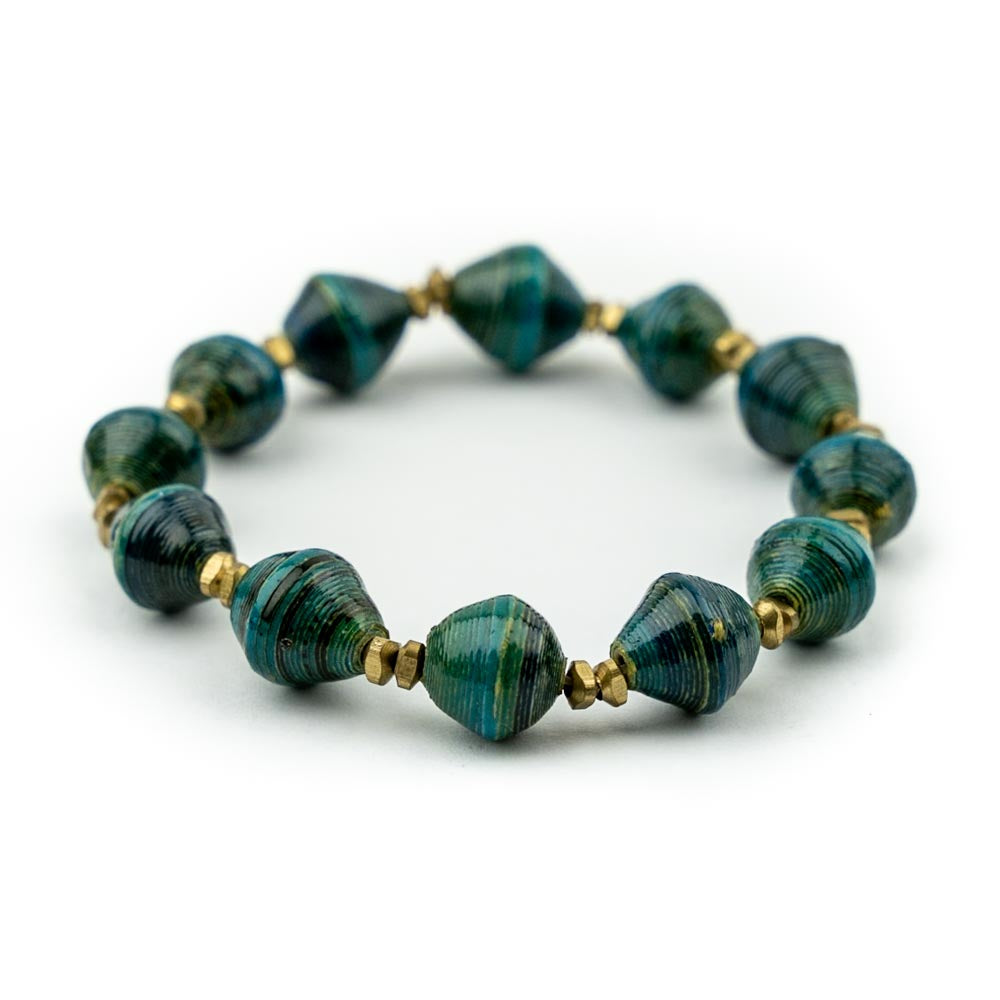 These fun bracelets come in a variety of colors and are made of 100% recycled paper beads handcrafted by Masai women. Gorgeous copper/silver/gold faceted spacers are hang-strung between each paper bead. They are perfect to stack with any of our other paper bead bracelets or mix it up with one of your own bracelets! How you can make a difference: Each bracelet provides 200,000 gallons of clean water. Just 5 bracelets = 1 water...
