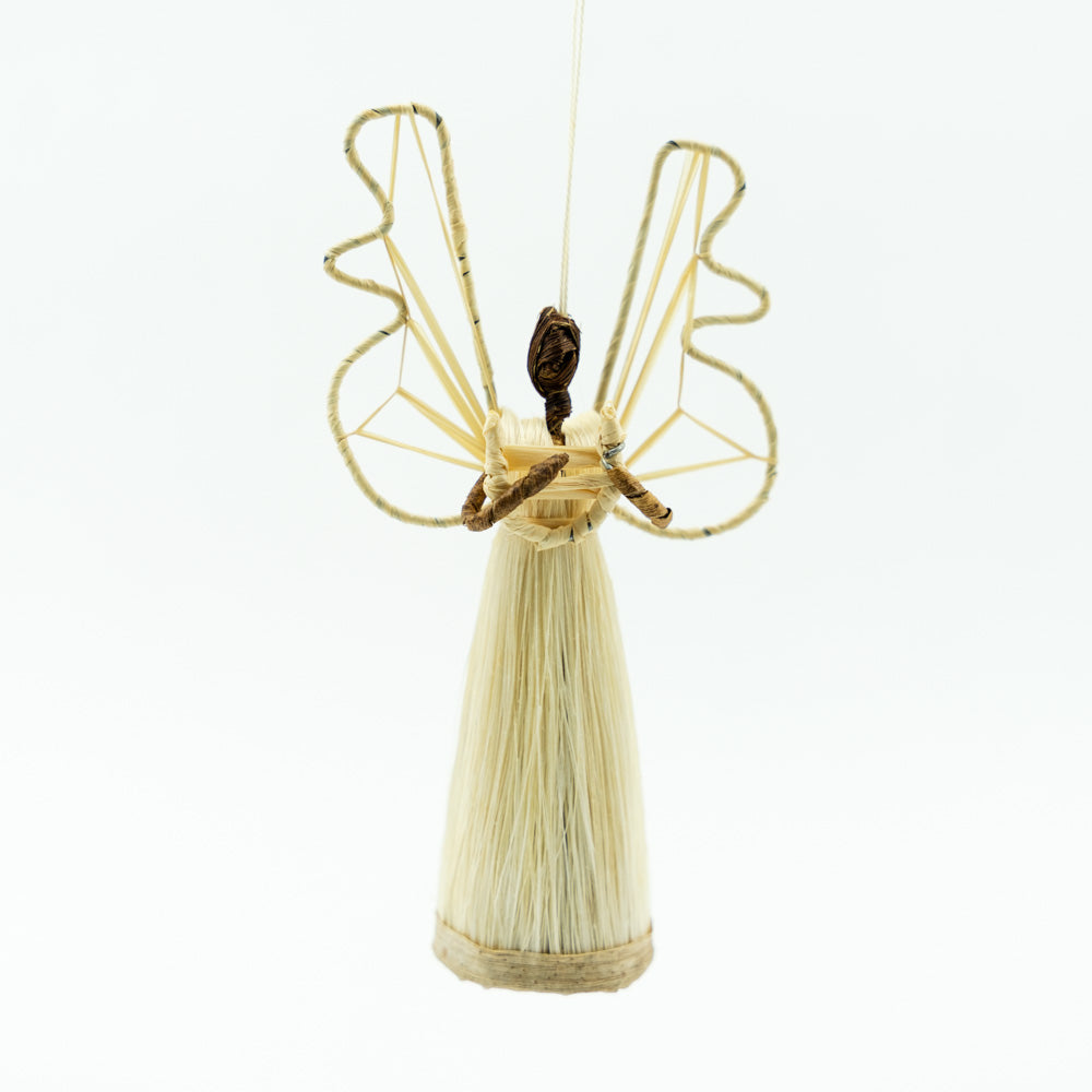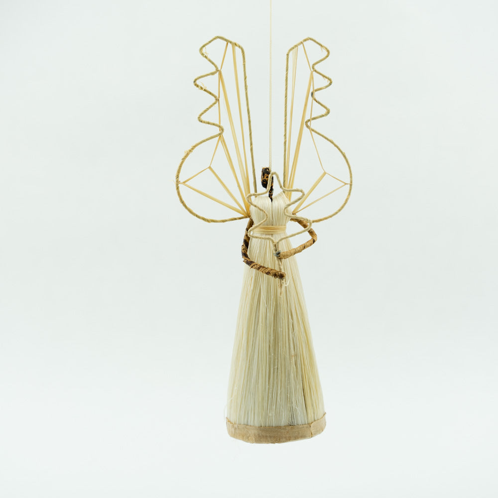 Handmade and unique, this banana leaf and sisal angel ornament is a perfect addition to your Christmas tree, shared in an ornament exchange or standing on your table.