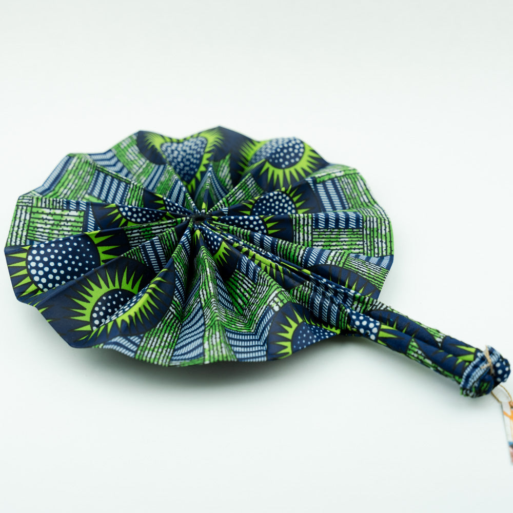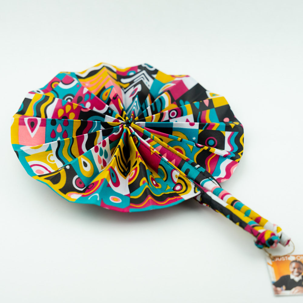 Stay cool and stylish with our vibrant African Kitenge fans, perfect for hot weather. Inspired by traditional African fabric, these fans add a unique touch to any outfit and make a great functional or decorative accessory.